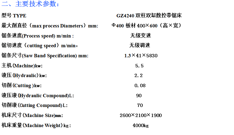 GZ4240數控帶鋸床
